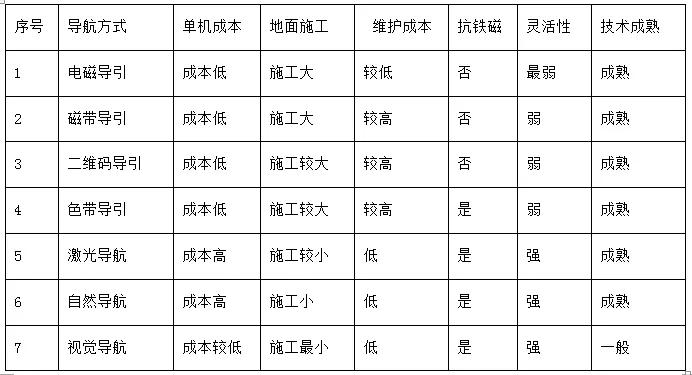 怡丰机器人现在能够提供各种导航方式的AGV,可以根据客户需求实现最优的解决方案。AGV各种导航方式的比较见表1。