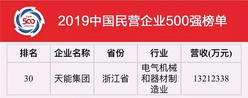 今天,2019中国民营企业500强峰会在青海西宁举行,会上发布了“2019中国民营企业500强”系列榜单及《中国民营企业500强调研分析报告》等。天能集团再次荣登中国民营企业500强,位列第30位,较上一年提升2位;同时,还荣登民营企业制造业500强榜单第14位。双榜排名均为行业第一。
