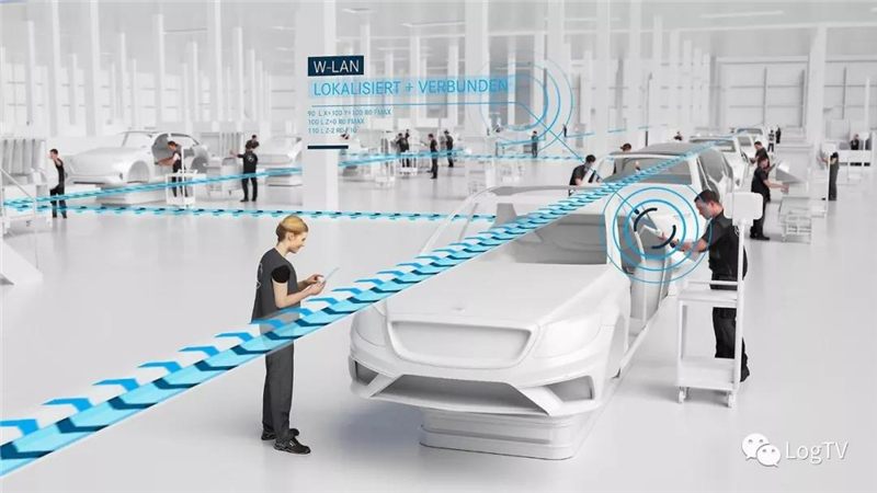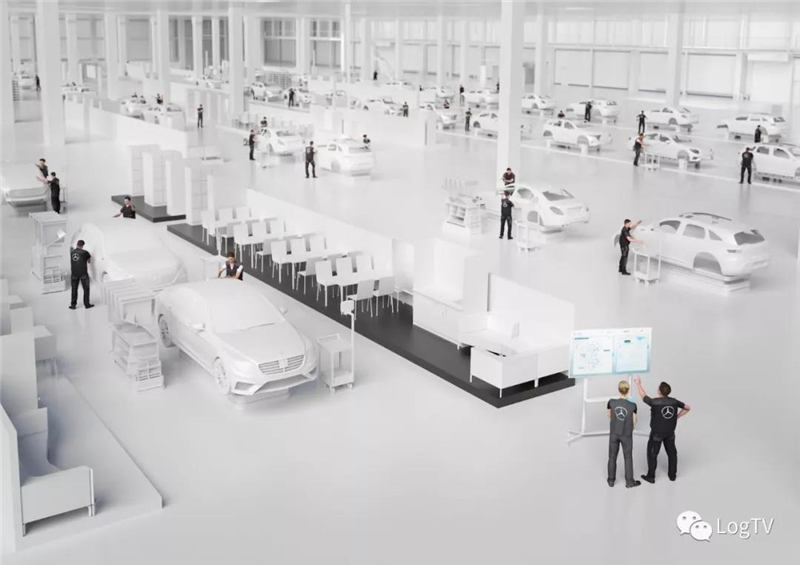 “奔驰56号工厂”的基本硬件架构取消了传统的“固定式”装配线,而是采用了TecLines无人驾驶运输工具系统,这套系统可以理解为基于AGV的柔性装配线,奔驰共配置了300套TecLines AGV,并与自动拣货、DTS拉料系统相匹配使用。可以最大程度的提高作业灵活性。TecLines不固定装配工位及其数量,每个单元的路径可以远程进行调整,站点之间也可进行切换,因此,可以根据不同的产品、订单量进行调节,且能满足个性化、定制化的需求。