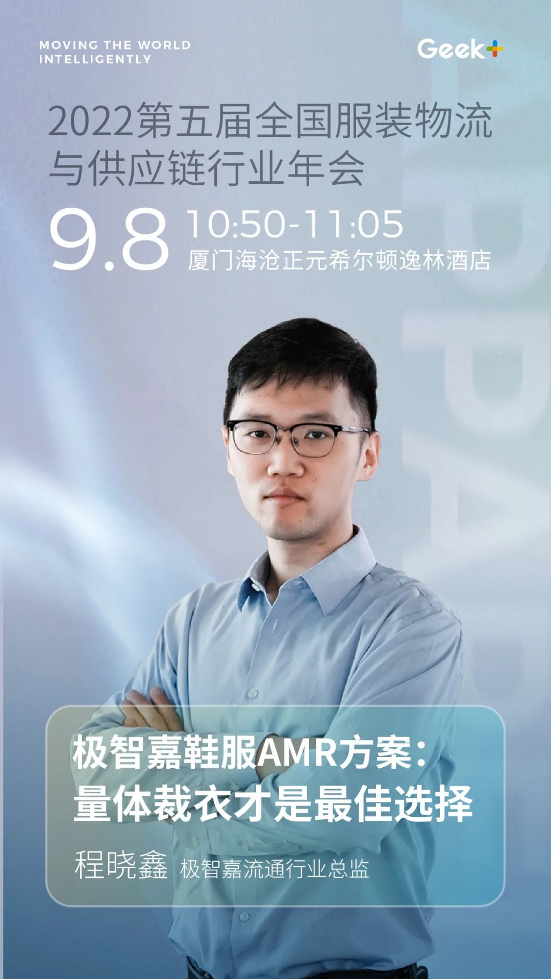 9月8日10:50-11:05,极智嘉流通行业总监程晓鑫将亮相大会,并带来“极智嘉鞋服AMR方案:量体裁衣才是最佳选择”主题分享,通过对服装行业全仓场景的深入研究,分享全仓不同场景下更适配的AMR解决方案,与业内资深人士共探服装行业柔性方案的应用与创新。亮点纷呈,敬请期待!