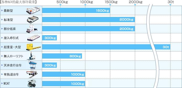 从十几千克的重量较轻的物品到数十吨的重量物品,可应对范围广泛的搬运重量。