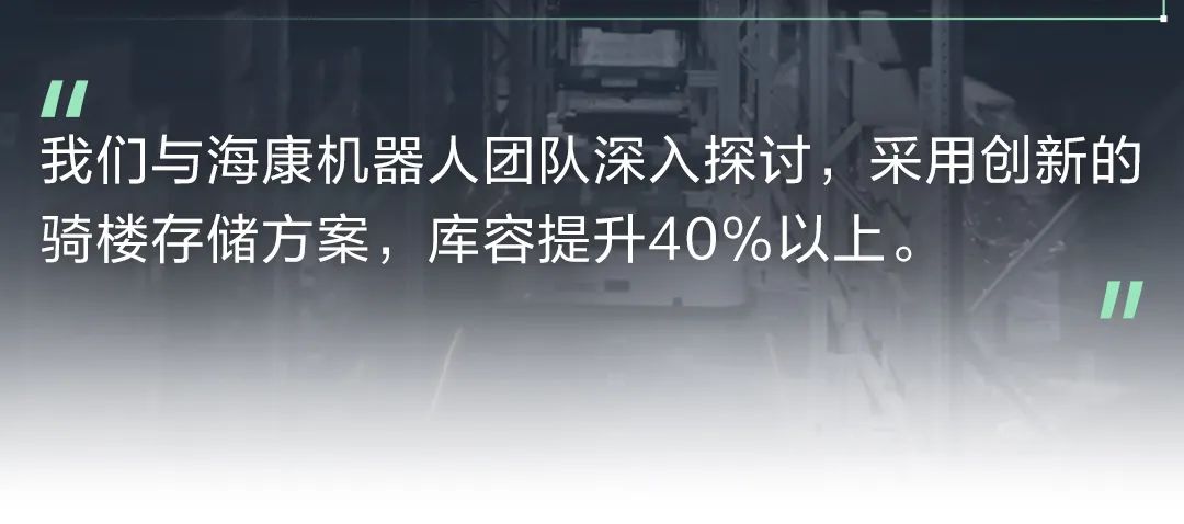通过“双深位骑楼模式”的库区设计及自动化的拣配方案,有效提高仓库存储容量,由前期的“平面地堆” 存储转变为“货架料箱一体式” 存储,充分利用了向上空间。库容从原来的9500箱+750板提升至13730箱+810板,库容提升40%以上。