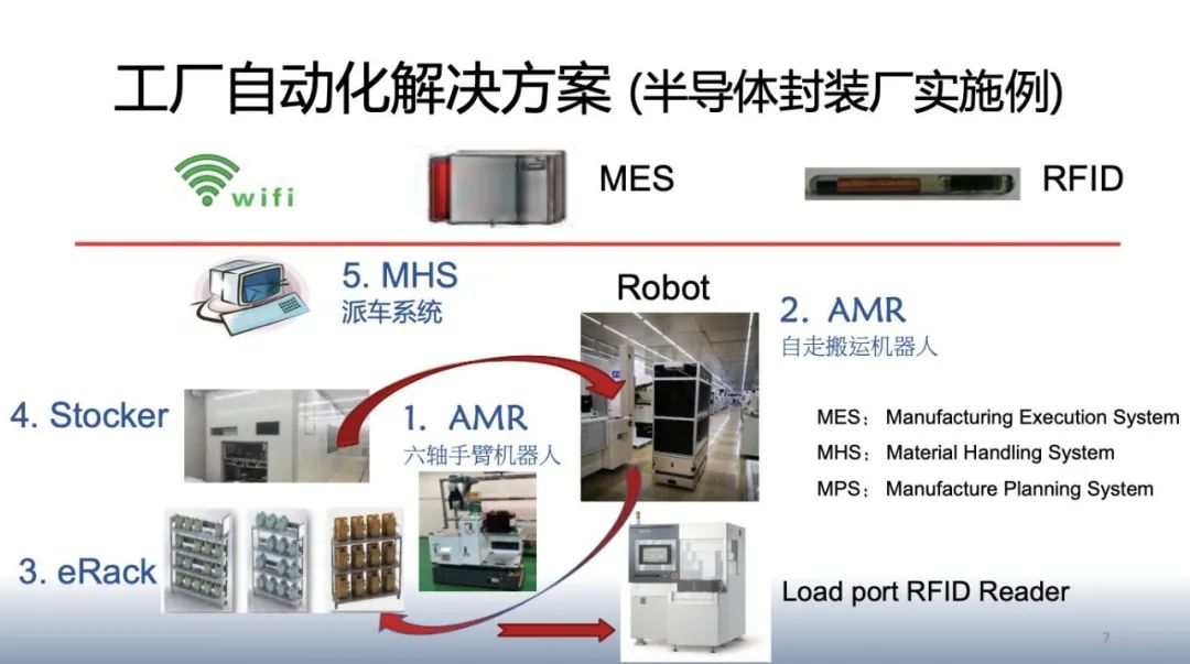 实现了半导体车间自动化升级改造,实现机台的自动化上下料以及工序机台间的物料转运,解决现有员工上料不及时、上错料、信息跟踪困难的问题。