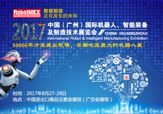 扎根于中国华南市场、涉足世界科技前沿生产制造的2017中国(广州)国际机器人、智能装备及制造技术展览会(RoboIMEX2017),将于8月27-29日在广州·中国进出口商品交易会展馆隆重开幕。该展会是由中国机械工业集团有限公司主办,国机智能科技有限公司、中国机械国际合作有限公司、中国电器科学研究院有限公司联合承办的大规模专业型机器人及智能制造展会,是推动《中国制造2025》的行业盛会。