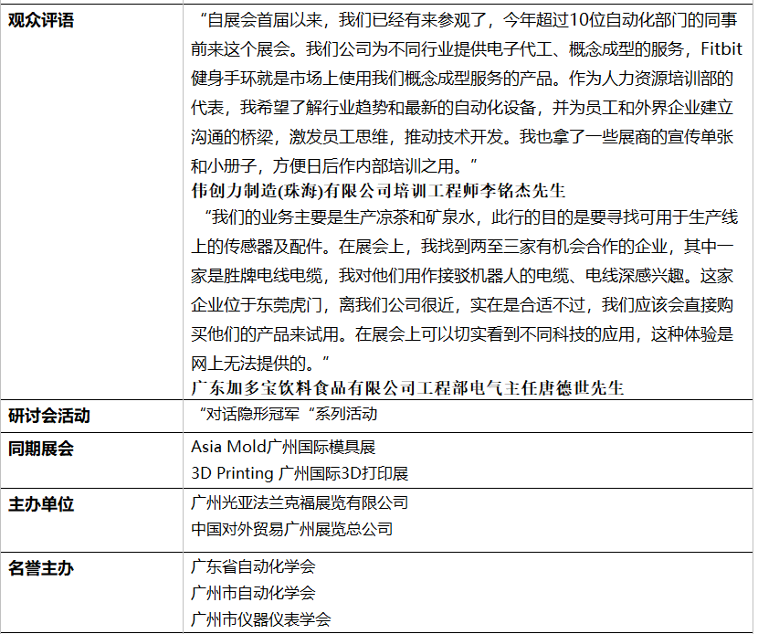 随着人们对产品质量的要求愈来愈高,中国制造业亦逐渐往高精度、高能源效益、高品质及均一质量的方向发展。故此,为工业自动化带来相关产品及解决方案的广州展会对业界的意义非凡,亦被不少展商视为有效的商务拓展平台。