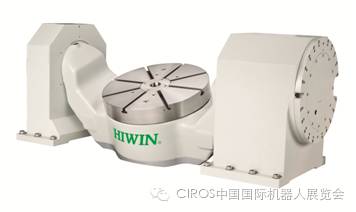 上銀直驅馬達迴轉工作台使用了HIWIN自製之交叉滾柱軸承,並採用高加速度、高扭力、高精度、零背隙的自製直驅馬達,以及內置空壓強力煞車系統,在新世代五軸加工機扮演關鍵性角色。