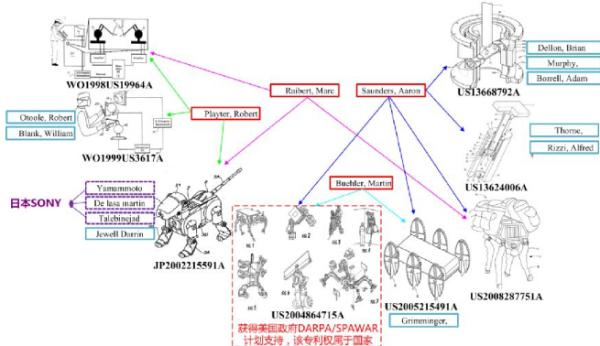 服务机器人三类机器人的国家机器人技术倡议(NRI),明确了美国机器人技术发展路线,但是在2013年发布的美国机器人技术发展路线图中新增加了航天和国防领域机器人技术发展规划。同时,美国在花巨资研究军用机器人时十分注重相关知识产权保护,例如美国波士顿动力公司的发明专利US2004864715A显示,该专利已获得美国政府DARPA/SPAWAR计划支持,同时也规定其专利权属于国家;另一方面,美国的军用机器人研发采取多方合作,例如波士顿BigDog最初的技术就是来源于日本SONY公司与波士顿动力公司联合研发,从其他媒体报道显示,该型号还与福斯特-米勒公司、喷气推进实验室、哈福大学康德菲尔德研究站进行了联合开发。