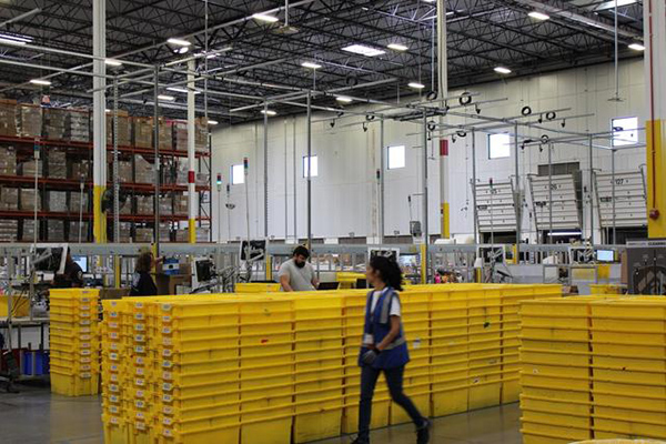 首先,亚马逊供货商的商品从入货口处进入该中心,通过先进的“入库三维成像系统”,收货过程得到大大简化,过去卸载半卡车的产品最长需要6小时,运用该系统后,可将时间缩短为30分钟。