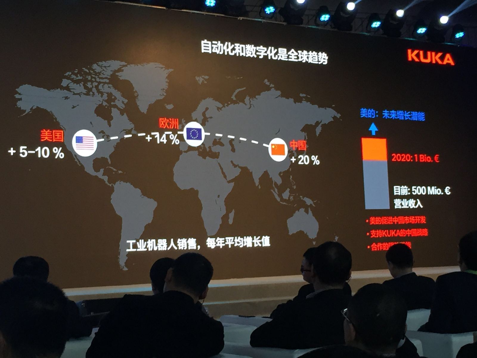 Till Reuter向第一财经记者表示,借助美的在中国市场的资源,库卡希望在中国机器人市场成为最大的供应商,下一步库卡与美的将携手共同开拓人工智能、服务机器人的新领域,最终让库卡实现2020年在中国市场取得10亿欧元营业收入的远景目标。
