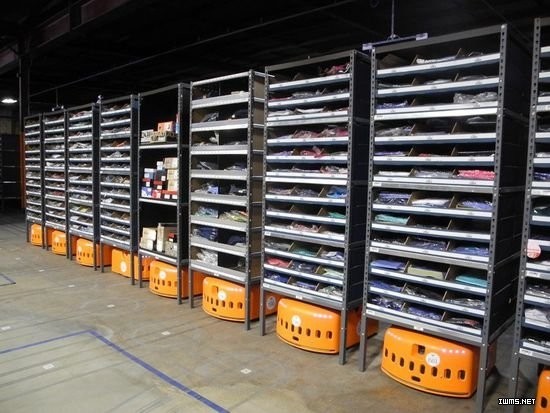 而亚马逊的货架机器人则可以沿着仓库地板上的条形码列队行走,不发生碰撞。