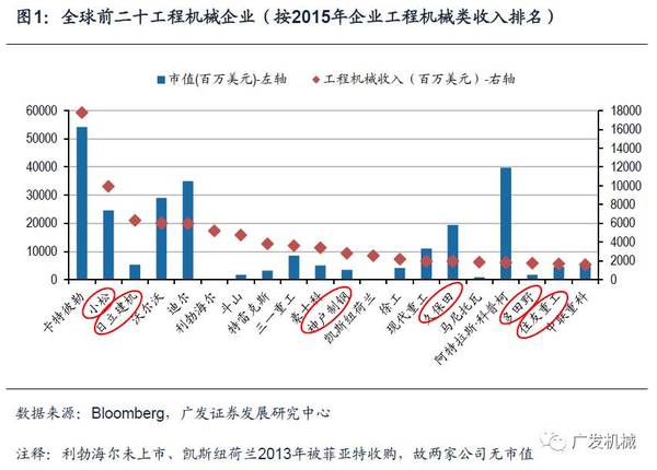 我们为什么以日本为例研究工程机械情况?主要原因有二:第一,日本战后经济发展之路与我国建国后经济发展有很多相似之处,日本近五十年的工程机械发展阶段能够对标中国,有很多经验教训值得借鉴。第二,日本工程机械发展水平很高,在日本城市化完成、内需大大减少的情况下,很多工程机械企业成功走出国门跻身世界前列。在全球前二十工程机械企业中,日本占据六席,其中小松更是仅次于巨头卡特彼勒,一直保持着日企龙头的地位。