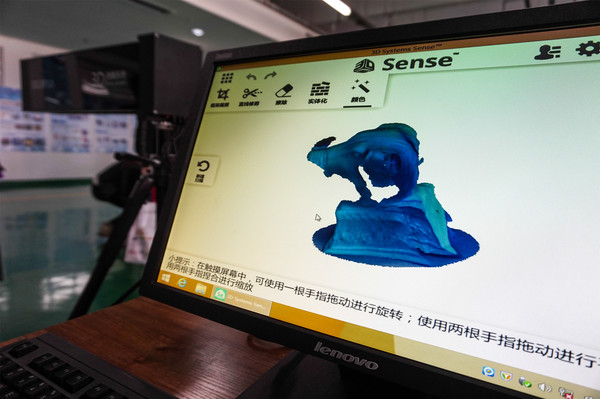 3D打印体验区可玩的东西就更多了。每一件电脑中的3D模型文件经过建模、贴图、渲染等工序,完成后便可通过3D打印机变为现实。当然,这是最为普通的人工设计建模。