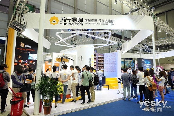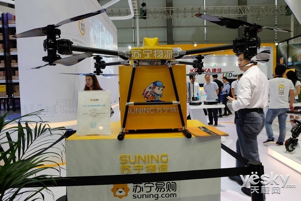 在物流区我们还看到苏宁展示的无人机,配置8个1500w的大电机,最大载重10kg,载荷很大。可以看出,经过多年的零售生态圈布局之后,苏宁已拥有完整的"智慧零售"体系。