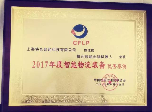 同时,快仓在与中国最大的物流应用场景之一的菜鸟相结合等项目实施中均表现突出,成绩优异;并始终坚持以超越用户需求为导向,得到了中物联组委会及领导们的高度赞扬及一致认可,被授予“2017中国物流信息化十佳应用企业”的荣誉。