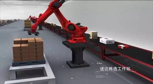 京东的无人仓中也有我们比较熟悉的机器人——六轴机器人可实现拆码垛,就是堆放和移动商品。码垛算法的指导下,每种商品都可以自动生成个性化的垛型,由机器人自动适配对每种商品自动码垛。