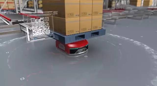 无人仓中有大量貌似“扫地机”的机器人托着料箱有条不紊地忙碌着,这种AGV(自动导引小车)可通过地上的二维码定位进行导航,并结合系统的调度,实现了整个仓库的合理安排生产。相较于传统的输送线的搬运方案,通过AGV实现“货到机器人”的方式具有更高的灵活性。