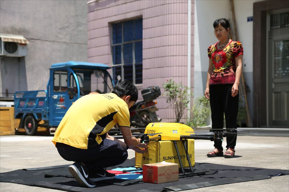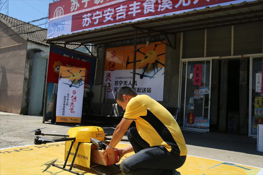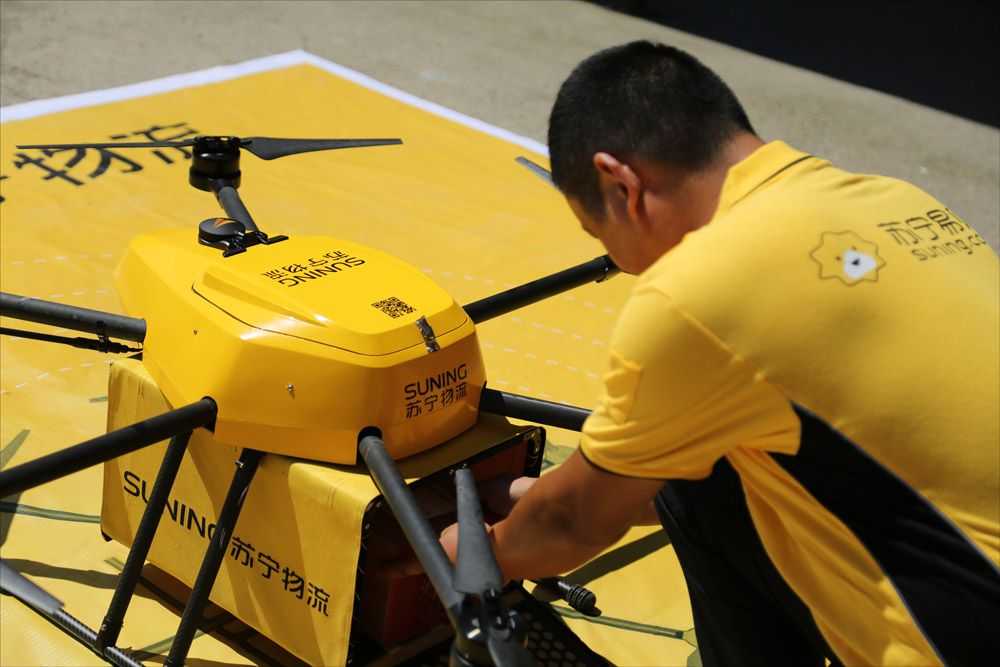 起飞!承载着苏宁物流人员专业精神,装有苏宁优质货物的无人机终于起飞了。