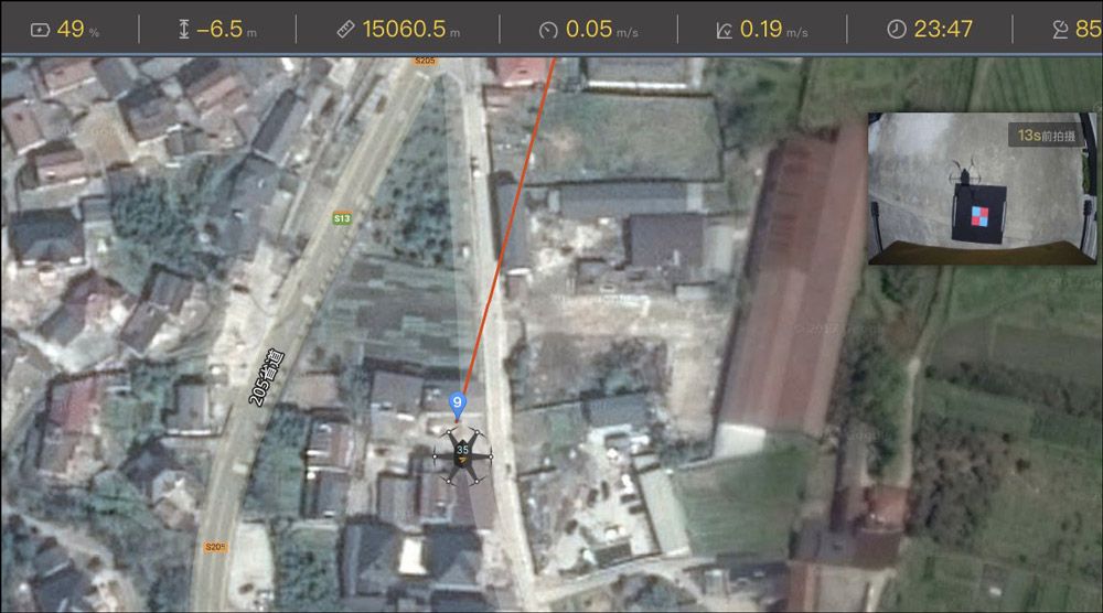 据悉,这架无人机从浙江安吉经济开发区丰食溪中学附近的快递配送站起飞,历时23分钟,飞行15.06公里,到达天荒坪镇潘村一个名叫山村农舍的农家乐。