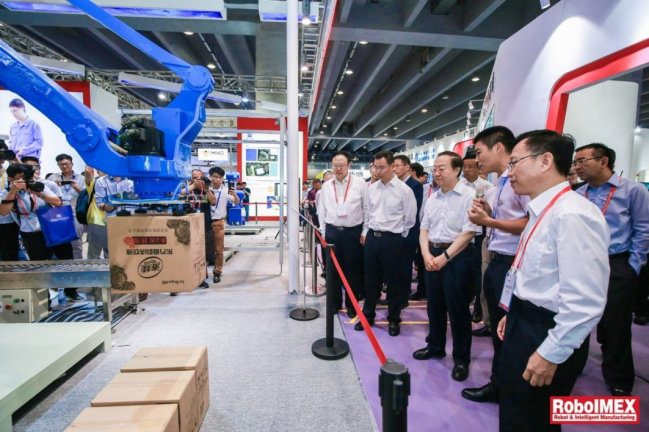展会开幕前,广州市委副书记、市长温国辉与中国工业经济联合会会长、工业和信息化部原部长李毅中、中国机械工业集团有限公司总经理徐建、工业和信息化部装备工业司副巡视员钱明华、中国工业经济联合会执行副会长兼秘书长熊梦、原机械工业部副部长赵明生、中国机械工业联合会常务副会长杨学桐、中国机械工业联合会副会长、原机械工业部总工程师朱森第、原中央大型企业监事会主席贾成炳、中国工程院院士王玉明、俄罗斯工程院院士、中国矿业大学校长葛世荣、加拿大工程院院士、“国家千人计划”专家苏春翌、新西兰工程院院士、“国家千人计划”专家陈小奇、中国机械工业集团有限公司副总经理丁宏祥、国机智能科技有限公司董事长黄兴、中国机械国际合作有限公司董事长张福生、中国机械国际合作有限公司总经理韩晓军、中国电器科学研究院有限公司董事长秦汉军、广州机器人产业联盟当值理事长、广州市敏嘉制造技术有限公司总经理赵虎、麻省理工大学教授Graham Rong等与会领导和专家进行寒暄并出席展会开幕式,广东省经信委巡视员邹生、广州市副市长、市政府秘书长叶牛平、市发展和改革委主任周建军、市工业和信息化委主任张晓波、市科技创新委主任王桂林、市商务委主任陈杰、广州市黄埔区人民政府区长陈小华陪同参加。