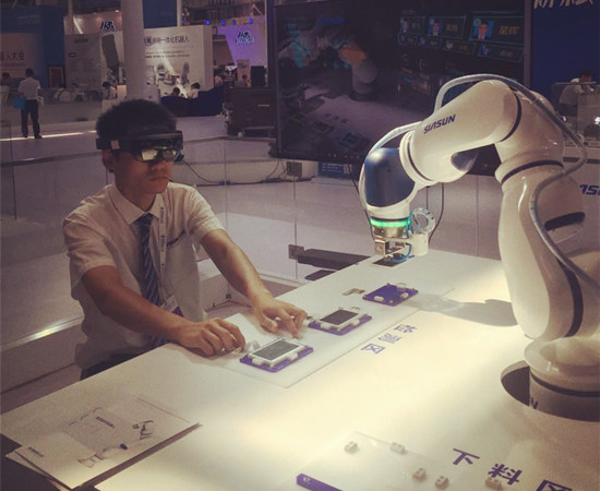 与其它前沿技术融合。比如与AR技术整合提高作业效率,就非常有代表性。正如同样具有工业协作价值的还有可穿戴设备AR眼镜,在2017世界机器人大会上,新松机器人率先拿出了他们的“协作机器人+AR眼镜”的解决方案,用于产品生产环节的原材料加工监测。