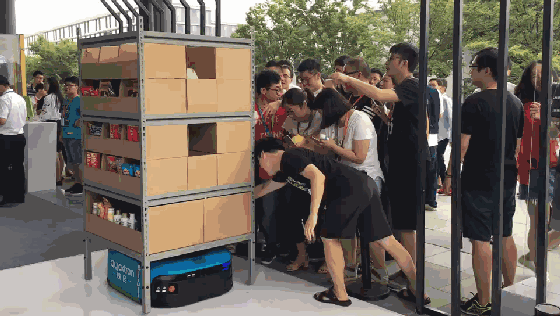 智能仓储机器人系统为用户提供产品级解决方案,从应用场景、流程再造到软件算法,从多主体系统到智能机器人,通过颠覆式的业务理念及高度整合的软件和硬件,实现了从“人到货”向“货到人”的转变,现场“货到人”拣选互动小游戏,吸引了好多阿里粉丝。
