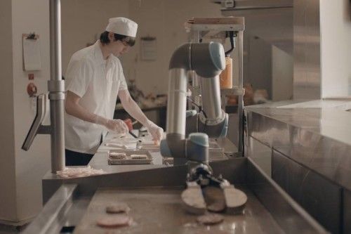 实际上,Flippy是一个优傲机器人生产的协作机器人,跟工厂里使用的机械臂不一样的是,Flippy经过特别设计的手部。新版本的Flippy被螺栓连接到厨房的地板,然后配置成Caliburger厨房的参数进行工作。