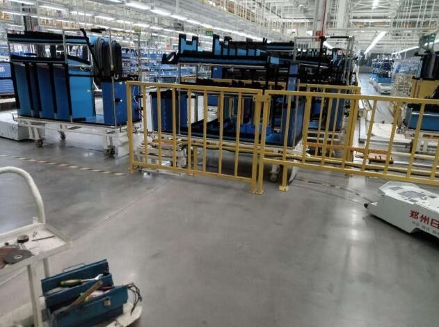 总装车间AGV导入项目,系统采用AGV小车实现车间内物料配送自动化。总装二车间各物料配送循环圈,包含内饰线、底盘线(承载/非承载)、发动机分装线、门线、底盘内饰线、前后县悬分装、玻璃分装、CPM分装等线体的配送系统建设,以及系统联网、与工程管理系统的连锁控制等附属工程。投入机器人数量170台,年工作时间5000小时,10.5+10.5小时两班体制下,输送线具有年生产1500000台整车的能力。