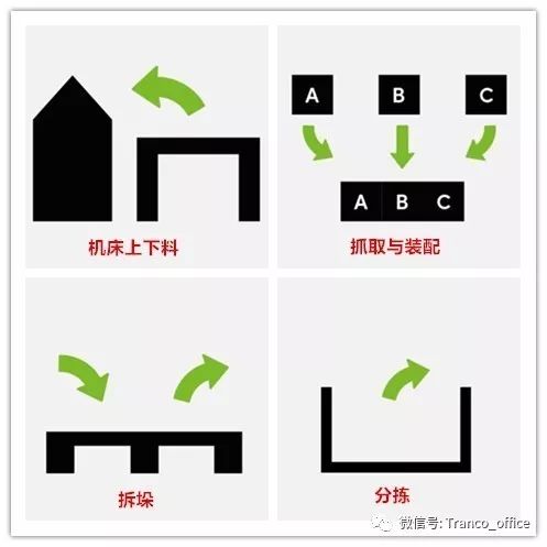 机床上下料、抓取与装配、拆垛、分拣等