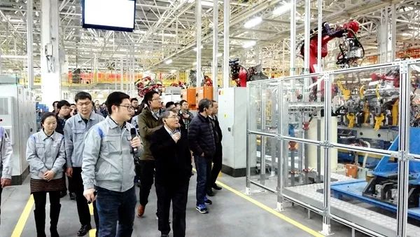 下午,在华晨汽车集团控股有限公司副总裁谭健的陪同下,参会代表在华晨汽车集团M82车间进行实地考察。作为国内首条大批量采用国产机器人的汽车生产线,该车间共有新松六轴工业机器人42台,主要用于完成车身侧围、大底板、发动机舱等难度较高工位的焊接工作。新松国产机器人在汽车生产车间的批量应用,打破了国外机器人在我国汽车行业的垄断布局,进一步推动了“国产汽车、国产制造”的伟大进程。