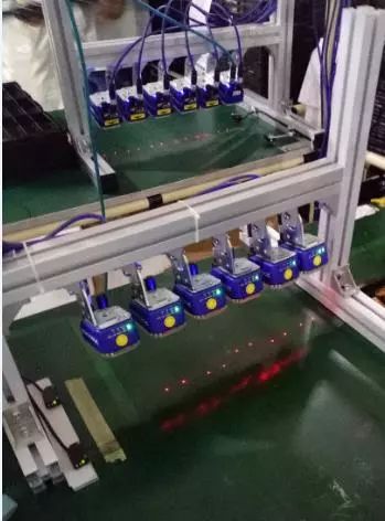 通过用6个Matrix 300N进行组网扫描输出,130万像素60帧高速稳定解码,人工只需一次把TRAY盘推到治具,5秒内读完60个码,效率大大提高,人员投入由12个减至3人即可轻松完成任务。