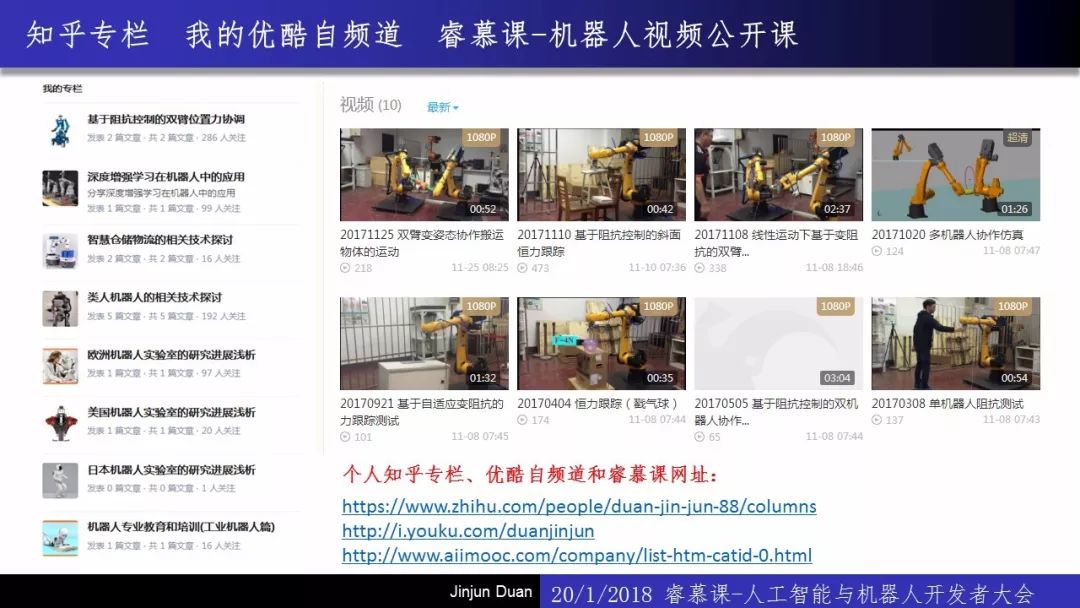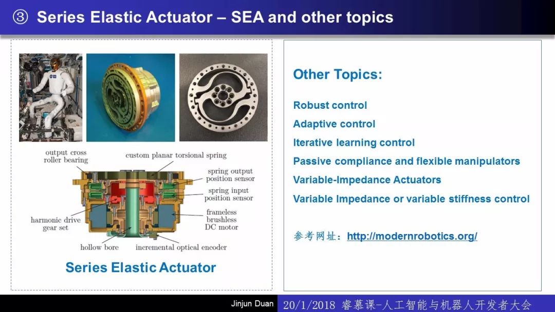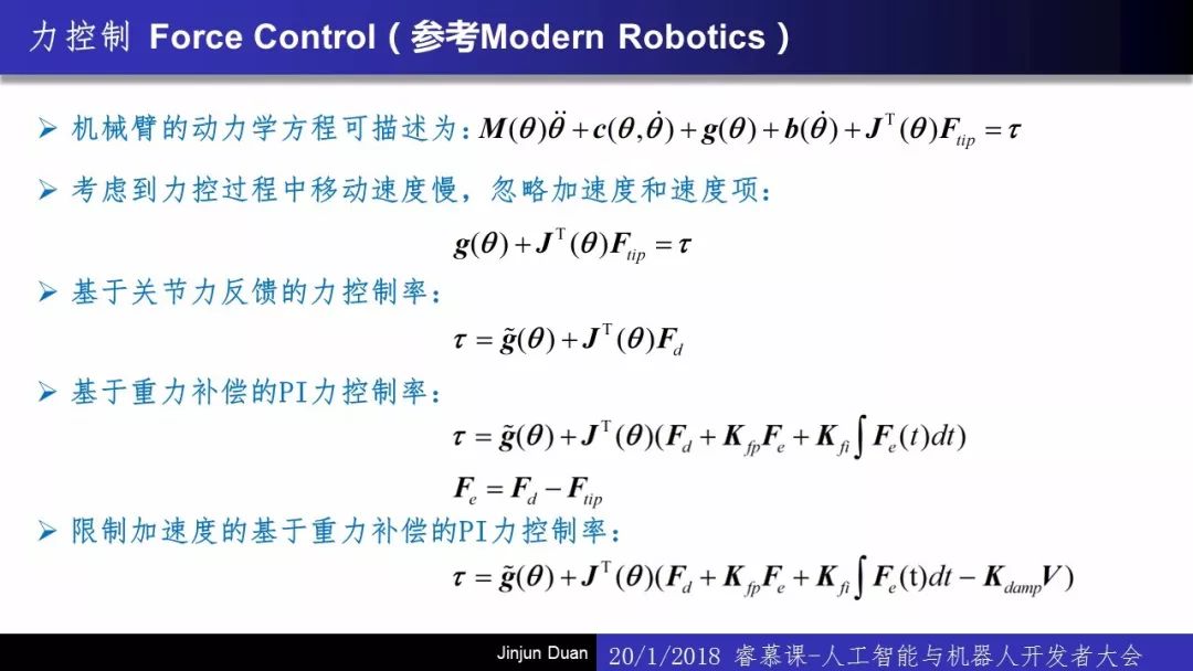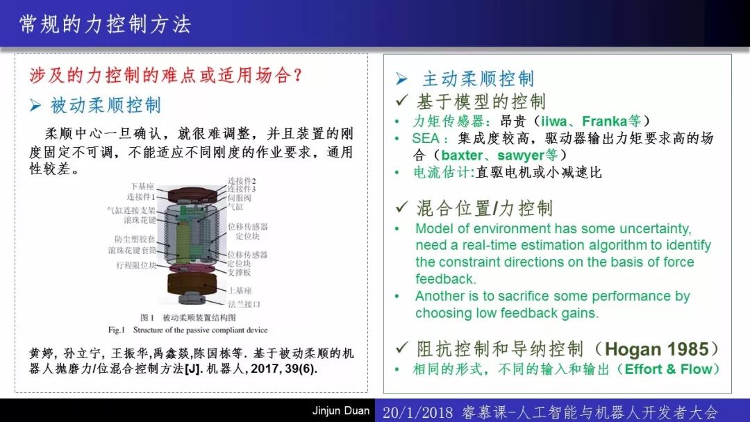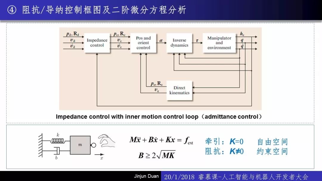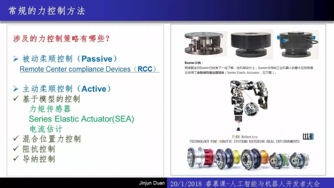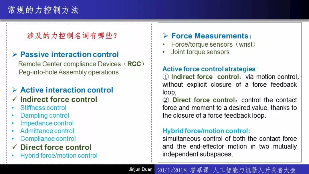 2018年1月20日,段晋军博士在睿慕课·2018人工智能与机器人开发者大会上进行了技术演讲,主题为《浅析阻抗控制在机器人系统中的应用》,阻抗控制在机器人系统中最重要的技术之一,段晋...
