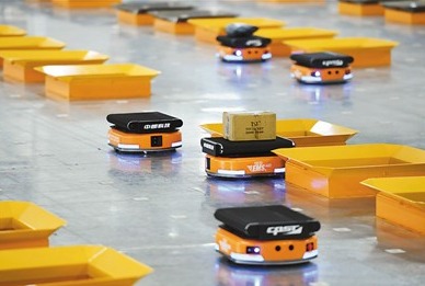 如今,智能机器人在快递分拣领域的应用大幅提升了快递效率。图为中国邮政速递物流华中(武汉)陆运中心启用机器人分拣邮件。