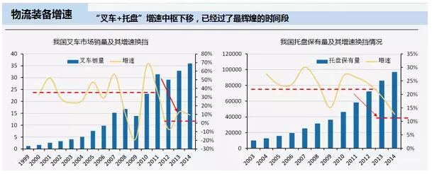 1、叉车市场和托盘市场从2010年后增速经历换挡期,增速中枢下滑明显。属于“叉车+托盘”的时代过去了