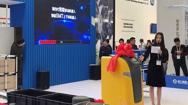 南江机器人在本次展会发布的两款产品第四代智能移动机器人、智能SMT上下料机器人受到现场嘉宾和参观者的极大关注。