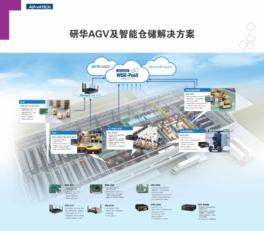 研华成立于1983年,以“智能地球的推手”作为品牌愿景,专注在工业物联网和智慧城市产业,提供软硬件整合解决方案。作为解决方案的优质提供商,研华拥有多款符合AGV行业应用特点的嵌入式主板及核心模块,既有基于Intel, AMD的X86平台,也有基于NXP、IT、Qualcomn的ARM平台;同时,研华还提供windows、Linux、Android等多种操作系统的整合服务。