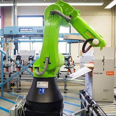 虽然STIHL工厂自动化程度很高,但在后段的产品检测和装箱环节,都需要人工完成。单台电锯的重量达到了10公斤,每位工人每班次需要累计搬运8吨的重量,工作强度很大。为了改变这一现状,不久前,STIHL在其电锯产品的包装线引入了FANUC CR-35iA协作机器人。