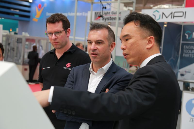 本次,博众将汉诺威作为开拓全球市场的首站,为全球客户提供优质EMS服务。在展台上我们可以看到,来自世界各地的观众站在电子显示屏前,通过滑动屏幕了解博众在电子行业、家电、新能源、家居、日化、食品、汽车等行业的产品及案例。同时,现场配备专业的国际销售人员,在现场直接与观众面对面就产品和技术进行沟通交流。