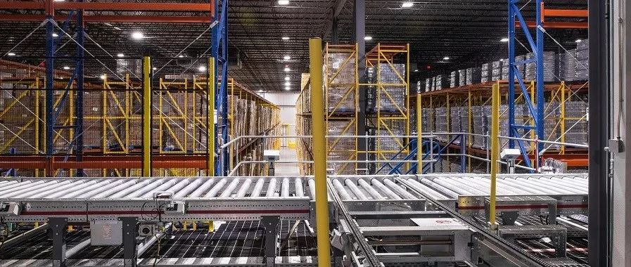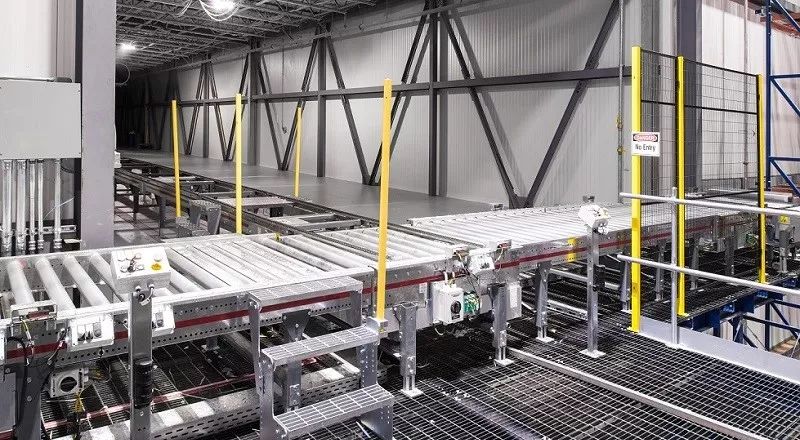 一条107米长的高架连廊将美冷的生产工厂与配送中心相连。连廊位于地上7.6米高的位置,以便卡车能安全通过。连廊既保证托盘在生产线码垛后全程处于温控环境中,又避免阻碍下方的交通,卡车和产品都能安全地各行其道。瑞仕格设计了一台垂直提升机,将托盘从AGV卸货口提升到连廊。在连廊内,采用ProMove链式输送机搬送托盘。ProMove输送机被专门设计用于冷库环境,具有高度的可靠性,减少人员干预。
