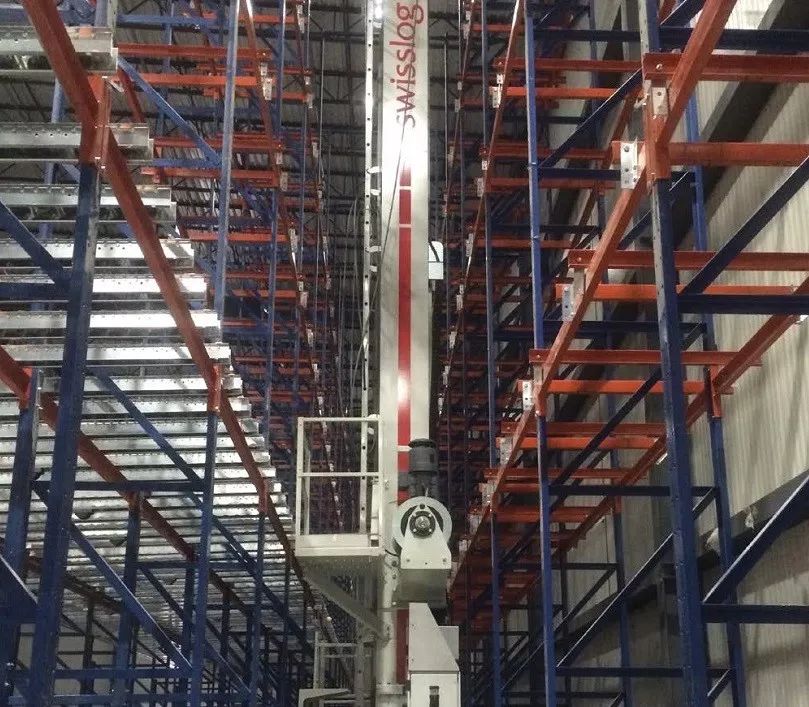 在高架库巷道内每台堆垛机的行走距离为83米,负责将产品分配到6个指定的存储区间,使其最靠近它们最终的存放处。高架库的对称式设计将人工方案和自动化方案组合。当仓库人员需要将成品发货时,自动化的方案帮助节省了所需的占地空间,最大限度地减少了人员数量,避免人员长时间处于恶劣环境下作业。