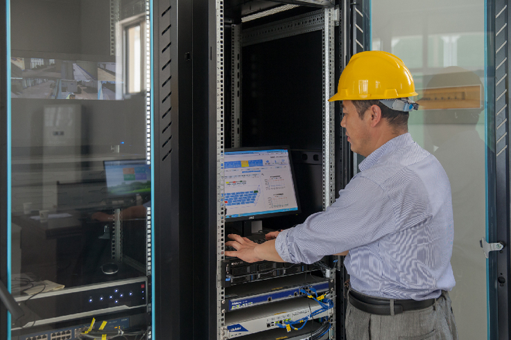 5月25日,山东省高青县国家粮食储备库工作人员通过智慧粮食管理平台查看数据。