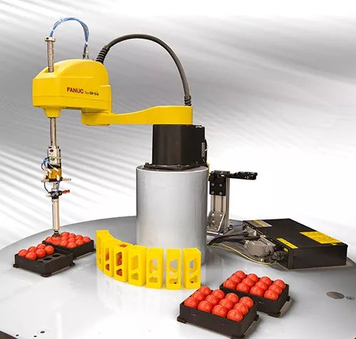 SR-3iA机器人,最大负载为3 kg,最大运动半径400 mm,可广泛应用于电子产品高速搬运