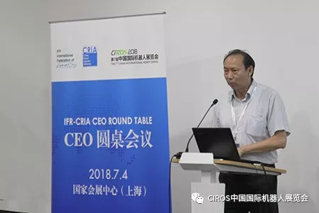 中国机械工业联合会执行副会长、中国机器人产业联盟秘书长宋晓刚主持2018 IFR-CRIA CEO圆桌会议召开
