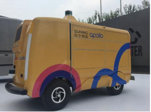 (苏宁物流联手百度Apollo联合推出的无人配送小车)