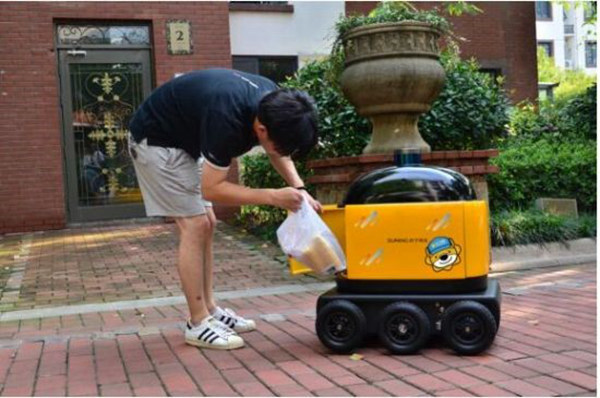 (南京市民体验“卧龙一号”无人送货)