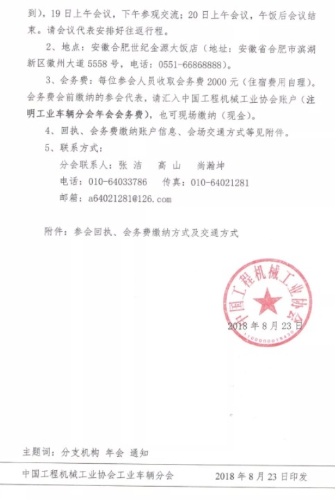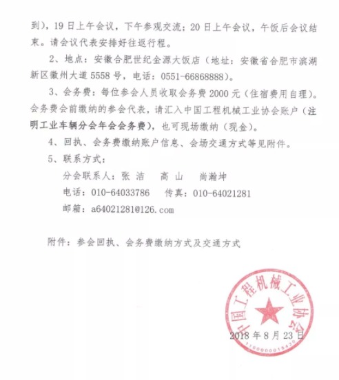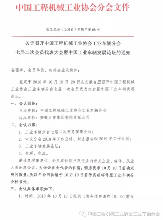 关于召开“中国工程机械工业协会工业车辆分会 第七届二次会员代表大会暨2018年年会”的通知