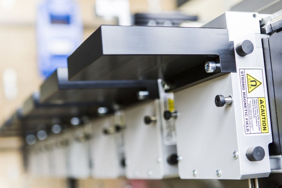 SuperTrak上的每个托盘配备两到三个永磁体,导轨上的线圈与托盘上的永磁体可产生吸力和推力,使托盘在导轨上移动。永磁体数量不同,产生的吸力和推力也不同,可满足不同的工业制造需求。由于托盘通过吸力而非机械装置固定在导轨上,安装或拆除托盘只需数秒,并且不费人力,易于产品的快速换型和系统维护,同时正常生产时间也大幅提升,在很多场景下生产效率比传统输送高出5-10倍。