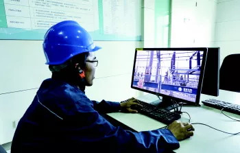 变电站内,移动式智能机器人“摇头晃脑”,沿途进行设备巡视、测温,运维人员只需坐在室内就可操作。在济宁220千伏高新变电站,国网济宁供电公司引进的智能巡检机器人。