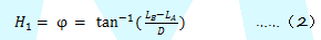 此时根据勾股定理和反三角函数公式即可得知AGV经过A、B上方时实际航向与路径的夹角φ(假设路径正前方航向角为0,φ即AGV实际航向角H1)为: