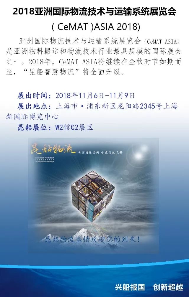 昆船物流诚邀您参加2018亚洲国际物流技术与运输系统展览会(CeMATASIA 2018)