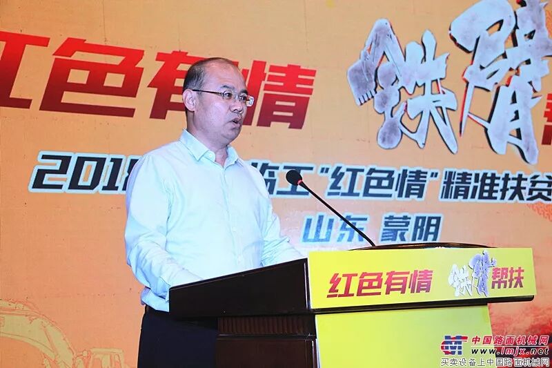 临沂市民政局党组书记、局长孙百迎介绍蒙阴县的扶贫攻坚情况,以及本次“红色情”行动的重要意义,并且高度评价了山东临工精准帮扶行动。